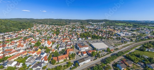 Sommerlicher Ausblick auf das Regental rund um den Ort Regenstauf im Regensburger Land