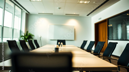 Spacious and modern meeting room with a minimalist design, featuring bright natural light and ergonomic chairs.