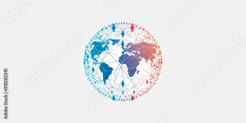 Spherical network of interconnected connections and business people on a white background design concept for a website banner Generative AI