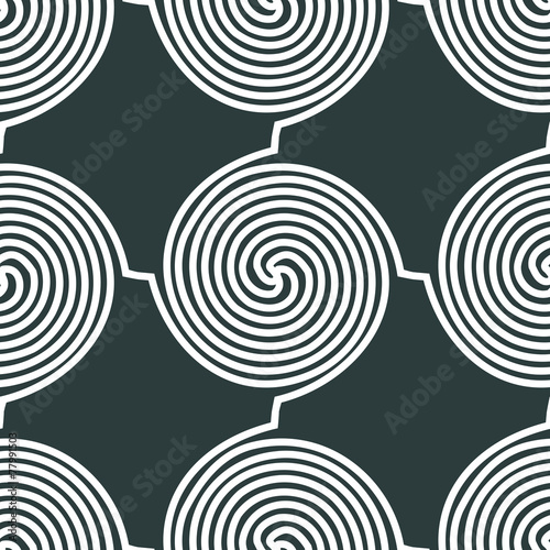 Spiral lines seamless pattern, black and white vector background