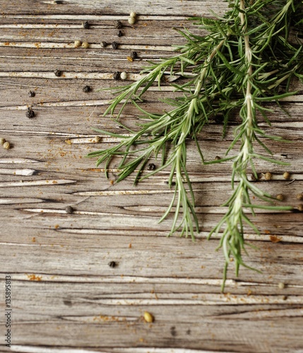 sprigs of rosemary with multi-colored pepper, selective focus