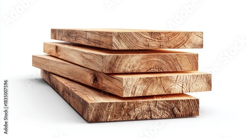 Stack of Rough-Cut Wood Planks Isolated on a White Background