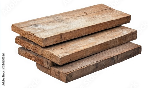Stack of Rustic Wooden Planks on White Background for Construction or Craft Projects