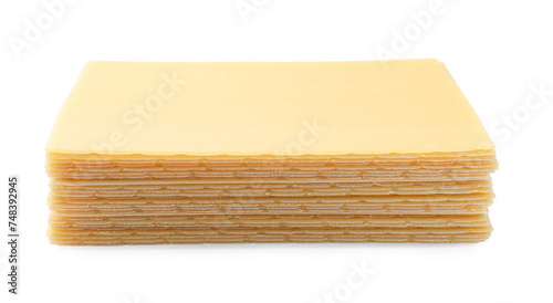 Stack of uncooked lasagna sheets isolated on white