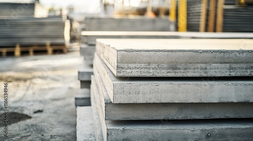 Stacked Concrete Slabs with Rebar at Construction Site Background