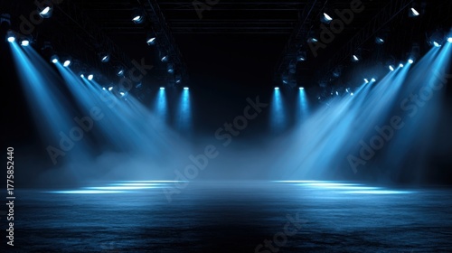 Stage Lighting with Blue Hues Illuminating an Empty Platform for Performance or Presentation