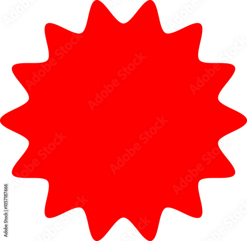 Starburst red sticker set - collection of special offer sale round and oval sunburst labels and buttons isolated on white background. Promo stickers with star edges. Vector