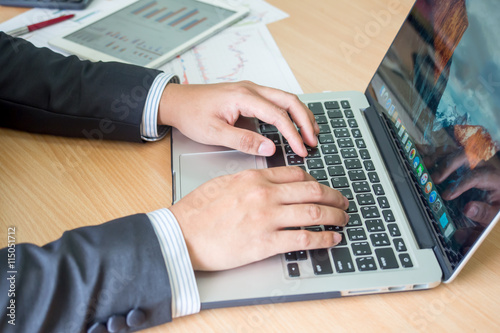 start working on laptop in office, close up of hands of businessman.
