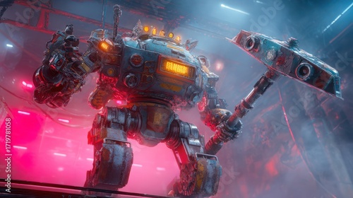 Steampunk robot with weapon