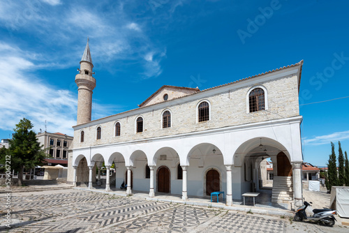 streets of alacati with a mosque, a small town with touristic attraction alacati night life hotels clubs and restaurants