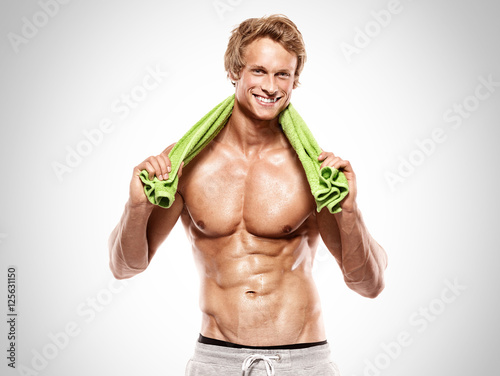 Strong Athletic muscle Man with towel