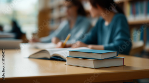 Students studying and learning new knowledge at a university library, focusing intently on books and making notes for their education and academic research, copy space