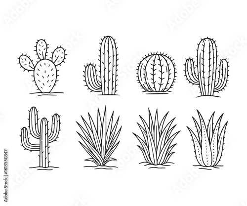 Stunning collection of hand-drawn desert succulents and cacti, perfect for natural, botanical, and decorative design projects.