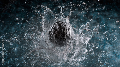 Stunning slow motion capture of water balloon bursting, creating dramatic splash of water