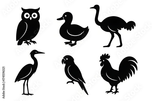 Stylized Bird Silhouettes in Varied Poses for Educational Use