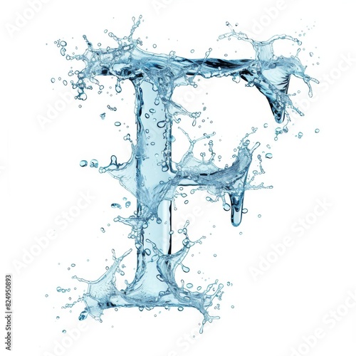 stylized font, text made of water splashes, capital letter F, isolated on white background