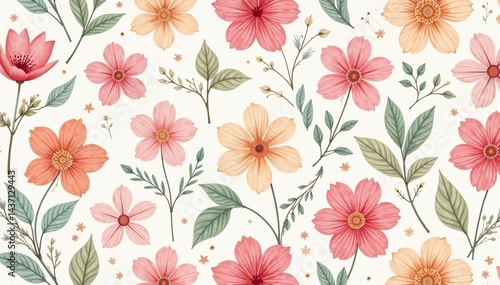 Subtle geometric floral motif, pastel tones, seamless repeat , design, calm