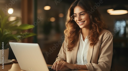 Successful Woman Working with Laptop in Office - Professional and Elegant Workspace