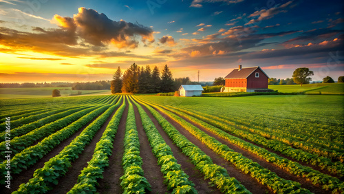 Summer landscape over agricultural farm field of crops in late afternoon, summer, landscape, agricultural, farm, field