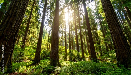 Sunlight filtering through Redwood forest