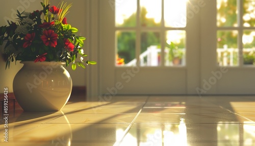 Sunlit Home with Clean Tiled Floors, Demonstrating Regular Maintenance and Care