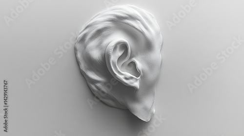 Symbolizing listening, hearing, and sound perception, a white plaster ear on a white background is ideal for healthcare, audiology, and communication projects.