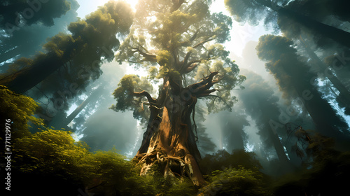 The lush green trees rise up into the air
