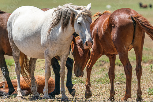 The scenic views of wild horses, mustangs at the Eynif Plateau, Antalya