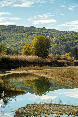 The turquoise waters of Köprüçay, a rafting center, and the yellow of autumn around it