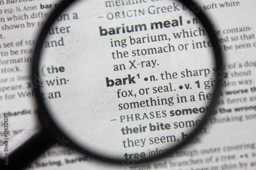 The word or phrase bark in a dictionary.