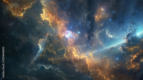 This is an ethereal and vibrant depiction of a nebula, showcasing a mesmerizing array of colors and shapes.