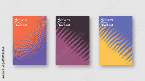 Three abstract posters with halftone gradient patterns