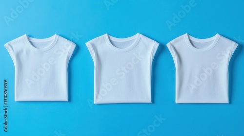 Three White T-Shirts on Blue Background for Apparel Display