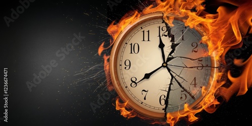 Time Running Out, A Burning Clock on a Black Background, Symbolizing Time Dissolution, Urgency, Time Management, Deadlines, and the Fragility of Time.