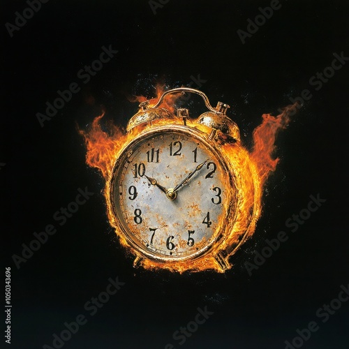 Time's Inferno: Clock Hands Distorted as Fire Devours the Minutes