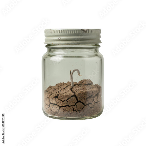 Tiny Sprout Growing in Cracked Dry Soil in a Jar