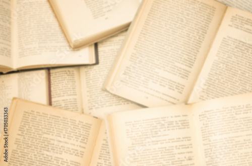 Top view of open books blurred background.