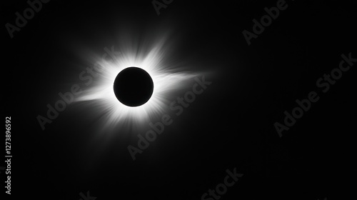 Total solar eclipse, sun corona, dark sky.