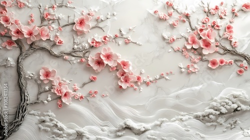 Traditional Chinese jade carving Plum blossom and snow illustration poster background