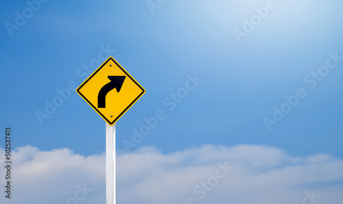 Traffic sign: warning sign on the right curve means the way ahead is a right curve.