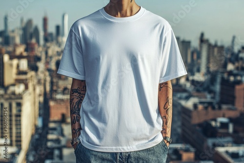 T-shirt worn by a model in an urban street wear style created with Generative AI