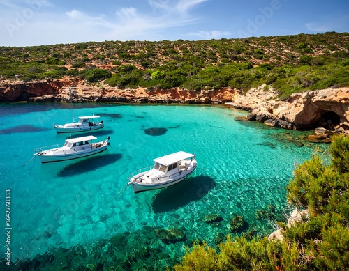 Turquoise bay with small boats