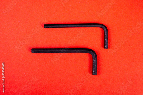 two Allen keys on red background