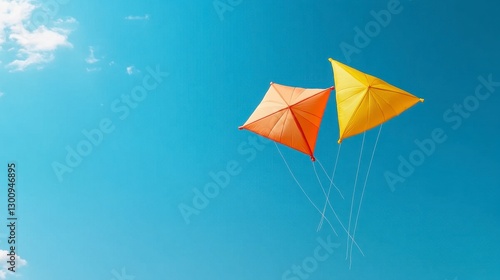 Two Colorful Kites Soaring in a Bright Blue Sky