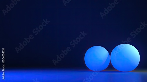 Two luminous blue spheres against a dark backdrop.