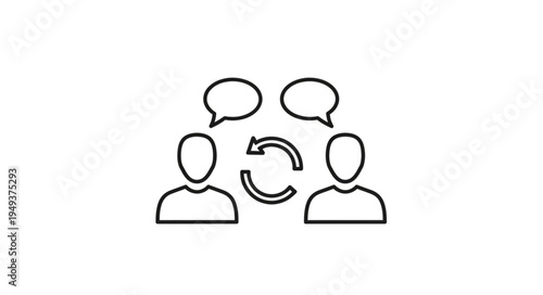 Two People Communicating with Speech Bubbles and Exchange Arrows.