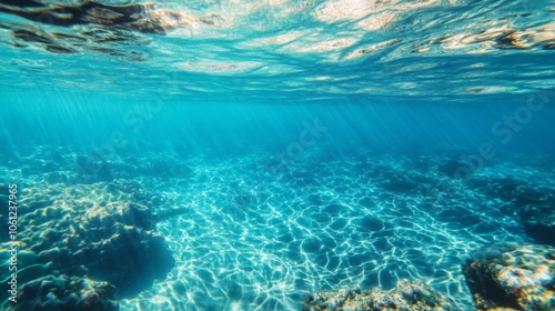 Underwater View of Sunbeams Illuminating the Ocean Floor
