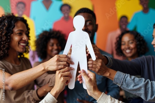 United in Diversity: Multicultural Group Protecting Rights and Equality Holding Paper Person Cutout