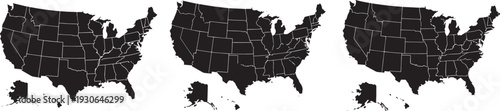 United States Map Silhouette Vector – Black USA Outline with State Borders, American Geography Design, and Country Map Illustration .