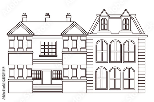 Urban buildings and city architecture in black and white